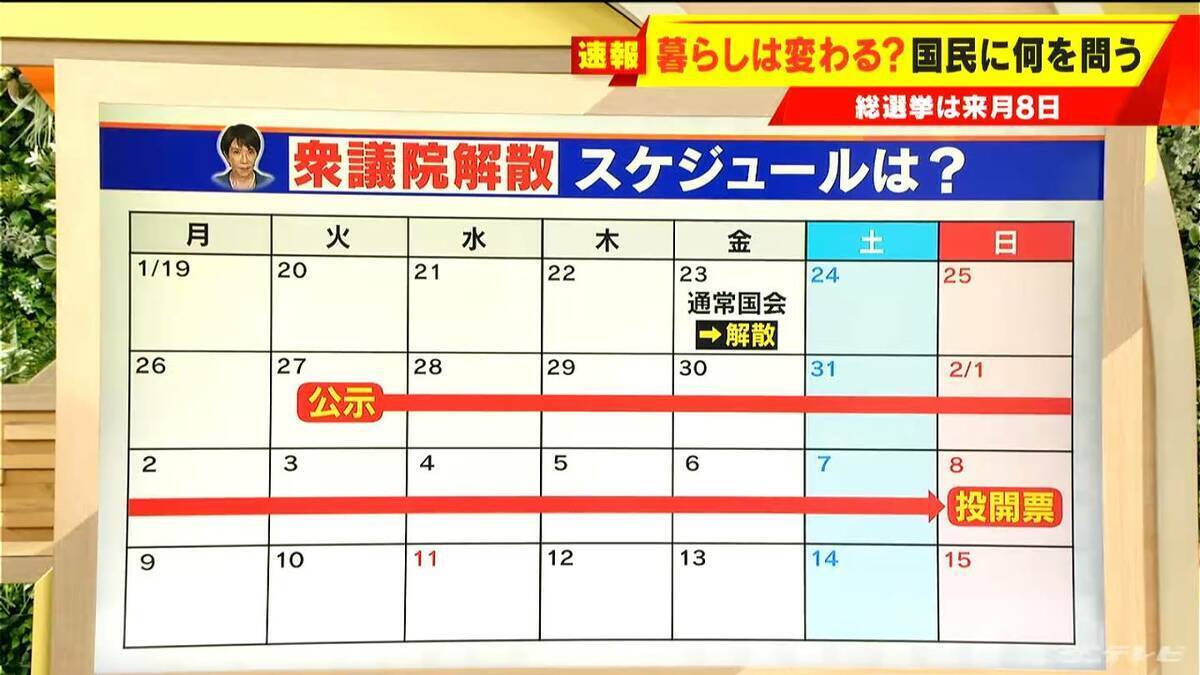 会見のポイントですが、「解散総選挙によって令和8年度予算の年度内成立は極めて困難になるのではとも言われています。その影響を最小限にとどめるため、速やかに総選挙を実施する考え」というお話でした。