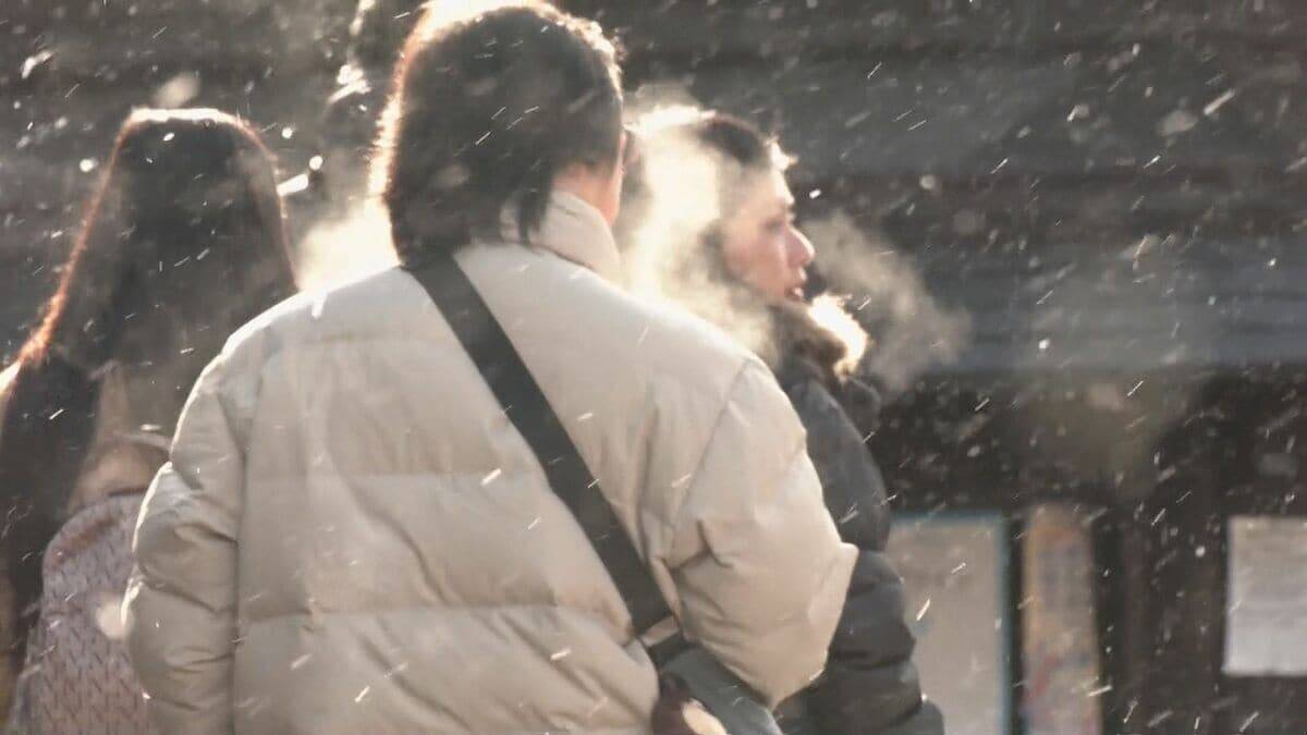午前9時頃の岐阜県高山市、宮川朝市や古い町並みでは細かな雪が舞っていました。岐阜県山間部など、東海地方の各地で最長寒波への備えが必要です。