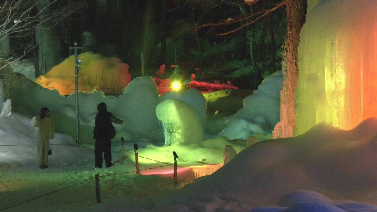 訪れた人は、七色の光が作り出す幻想的な世界を楽しんでいました。ライトアップは2月末まです。