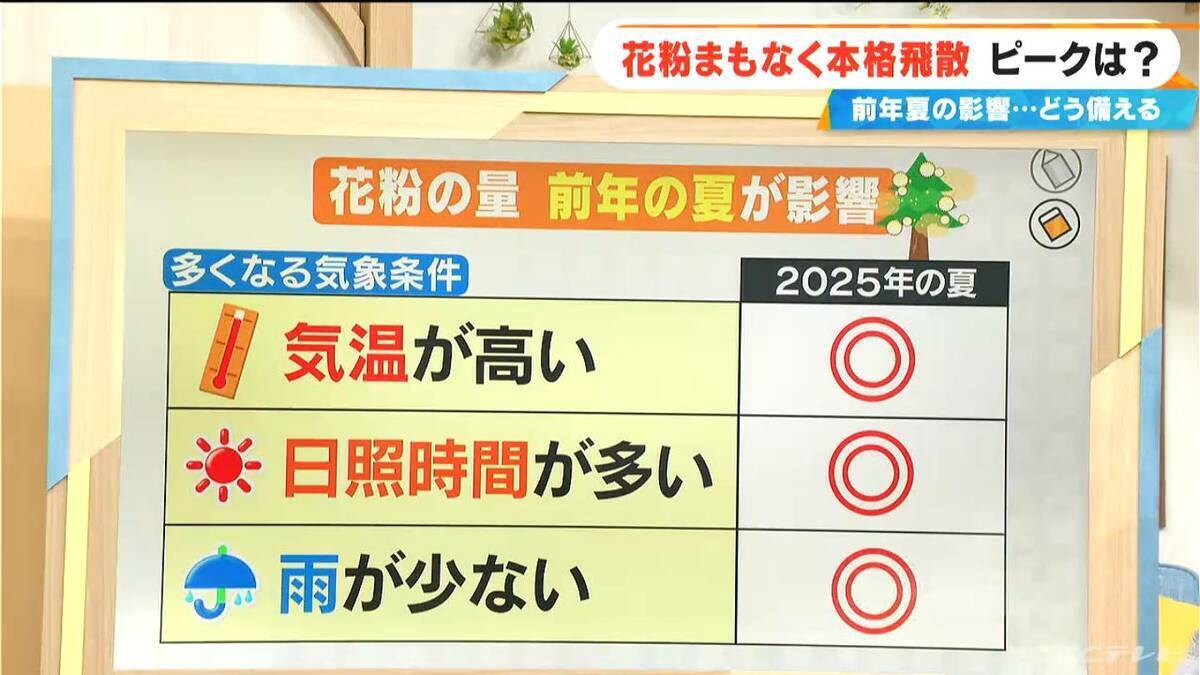 花粉の量というのは、前年の夏の気象条件が影響します。