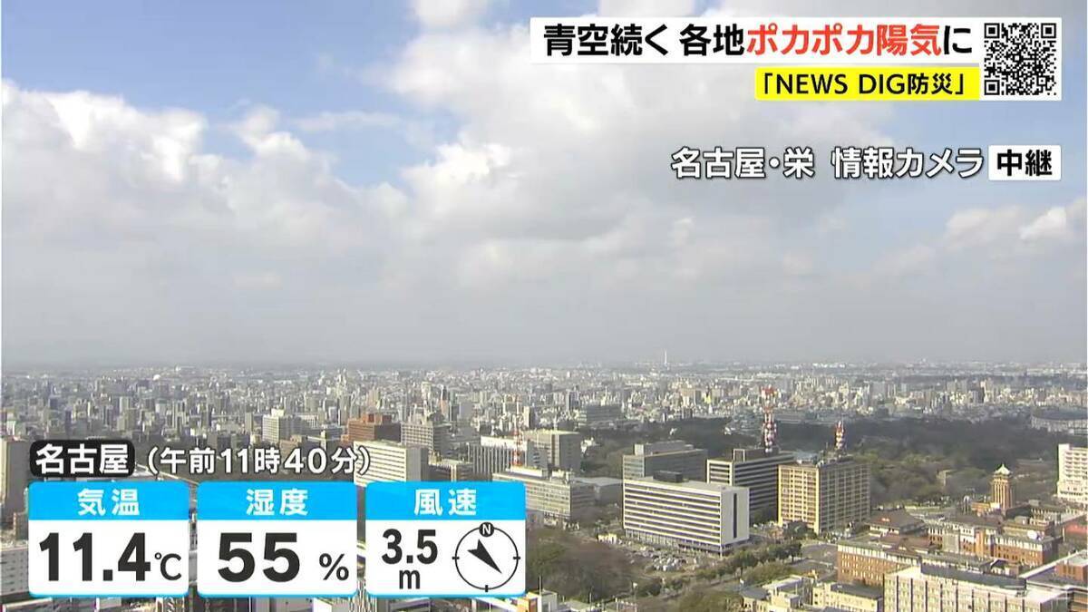 きょうは広く晴れて、名古屋では3月中旬並みの暖かさになるでしょう。
