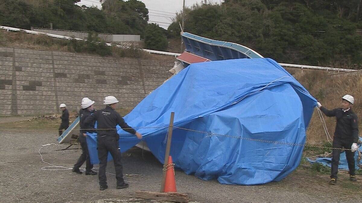 「今、船体にかけられていたブルーシートが外され、これから調査が始まります」