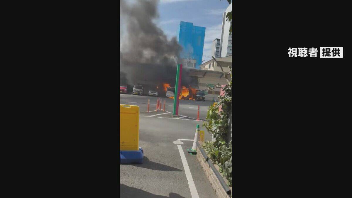 火事があったのは西区香呑町のショッピングセンターの屋外駐車場で、消防によりますと、7日午後1時15分ごろ「駐車場に止めてある車両から出火している」と、買い物客の女性から119番通報がありました。