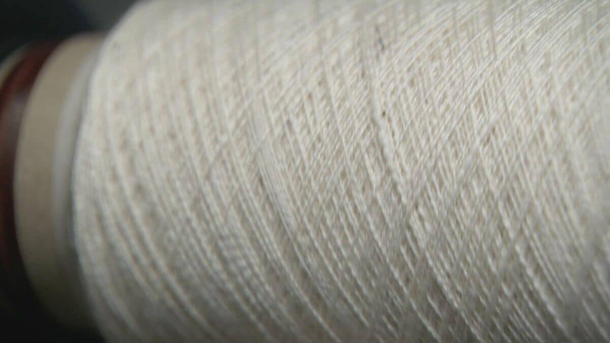 2本の性質の異なる糸をより合わせて、5年をかけて開発したという特殊な糸。この糸で作りあげたのが…