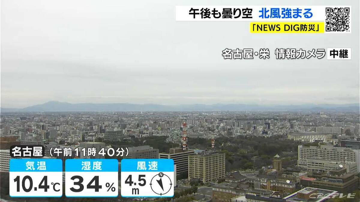 最高気温は名古屋や岐阜、尾鷲で13℃、津で11℃くらいになるでしょう。冷たい北風が強まり、日中も空気がヒンヤリとしそうです。