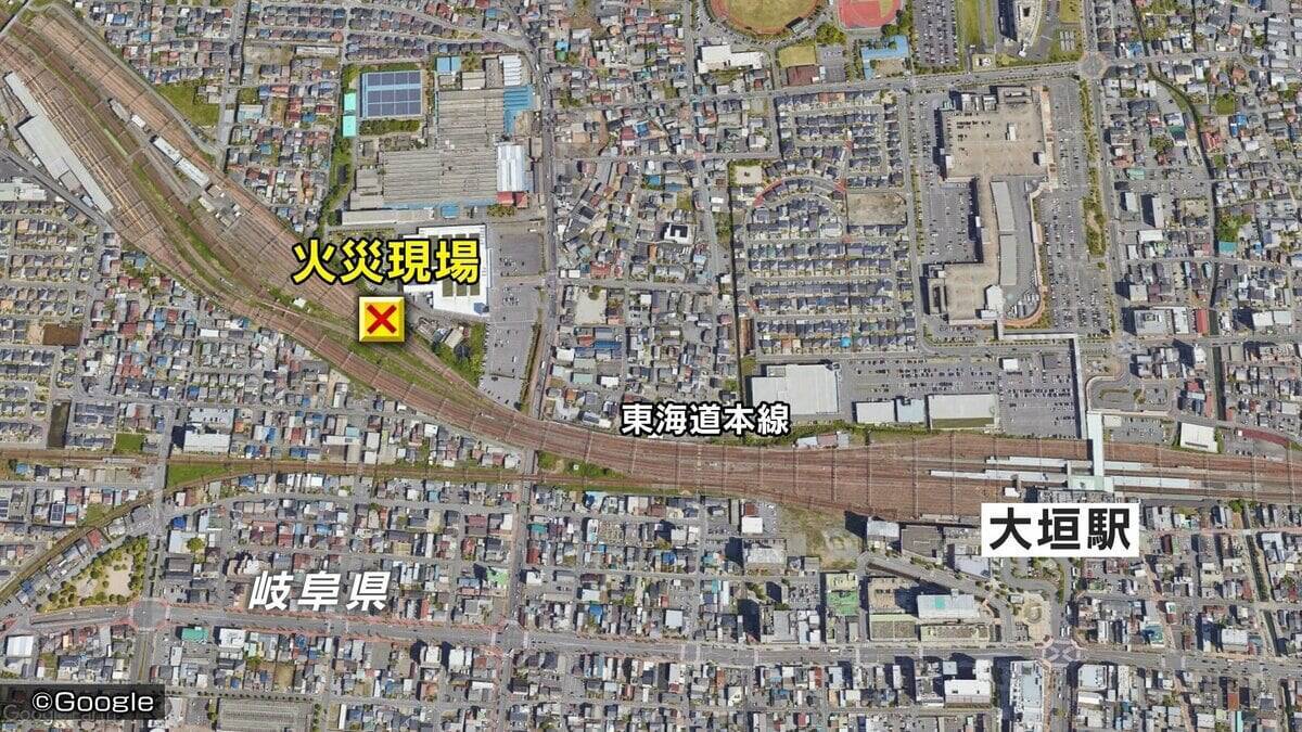 また、この火事の影響で、JR東海道線の「岐阜駅」から「米原駅」の間の上下線が一時運転見合わせとなっていましたが、午後4時55分ごろに再開しました。警察が火事の原因を調べています。
