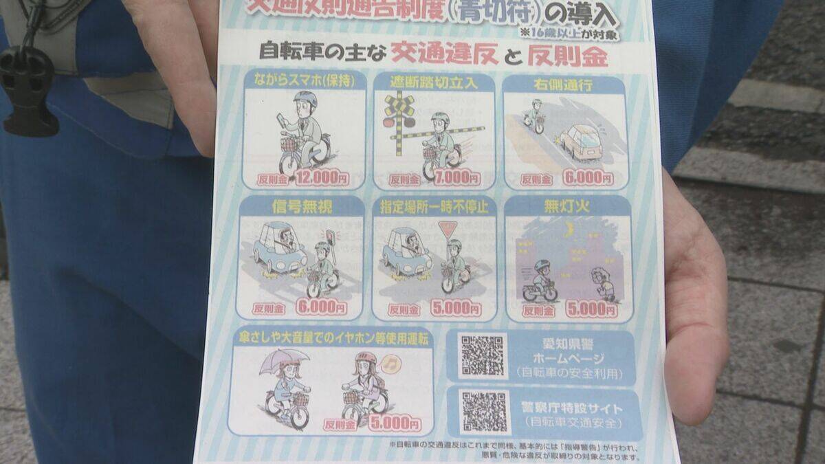 自転車の交通違反に反則金が科される「青切符」の制度がきょうから始まり、愛知県警が交通ルールの徹底などを呼びかけました。