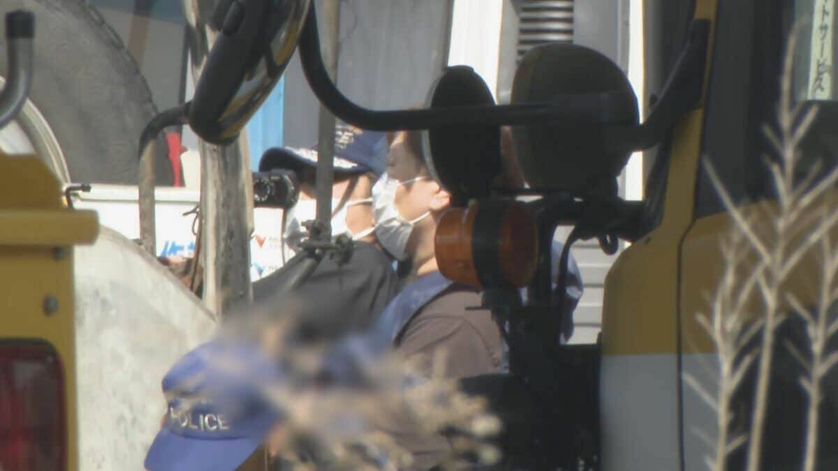 「大型トラックなど、事故当時の車両3台が並べられ、周りには捜査員がとり囲んでいます」