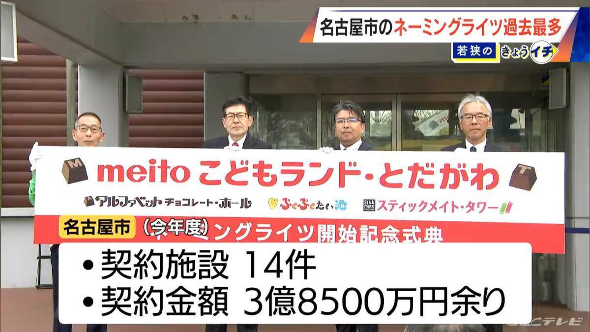 今年度、名古屋市のネーミングライツ契約施設は過去最多の14件で、契約金額は3億8500万円余りに上っています。