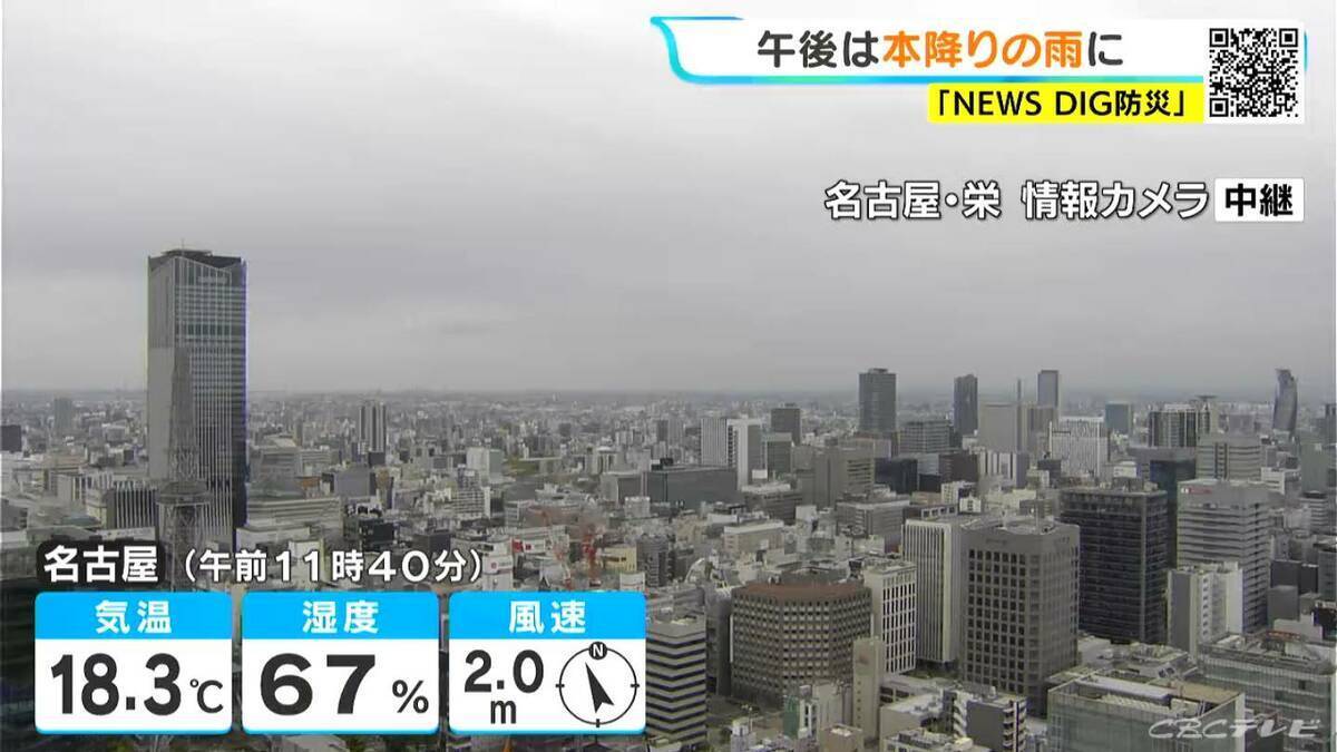 午後は、広い範囲で雨が降るでしょう。気温が上がらず、予想最高気温は、名古屋、岐阜、高山で19℃。津で18℃と、きのうより5℃前後低くなる所が多くなる見込みです。