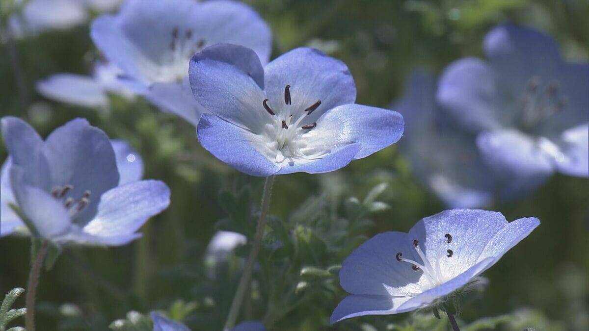 まるで青のじゅうたんのように広がるネモフィラが、見ごろを迎えています。