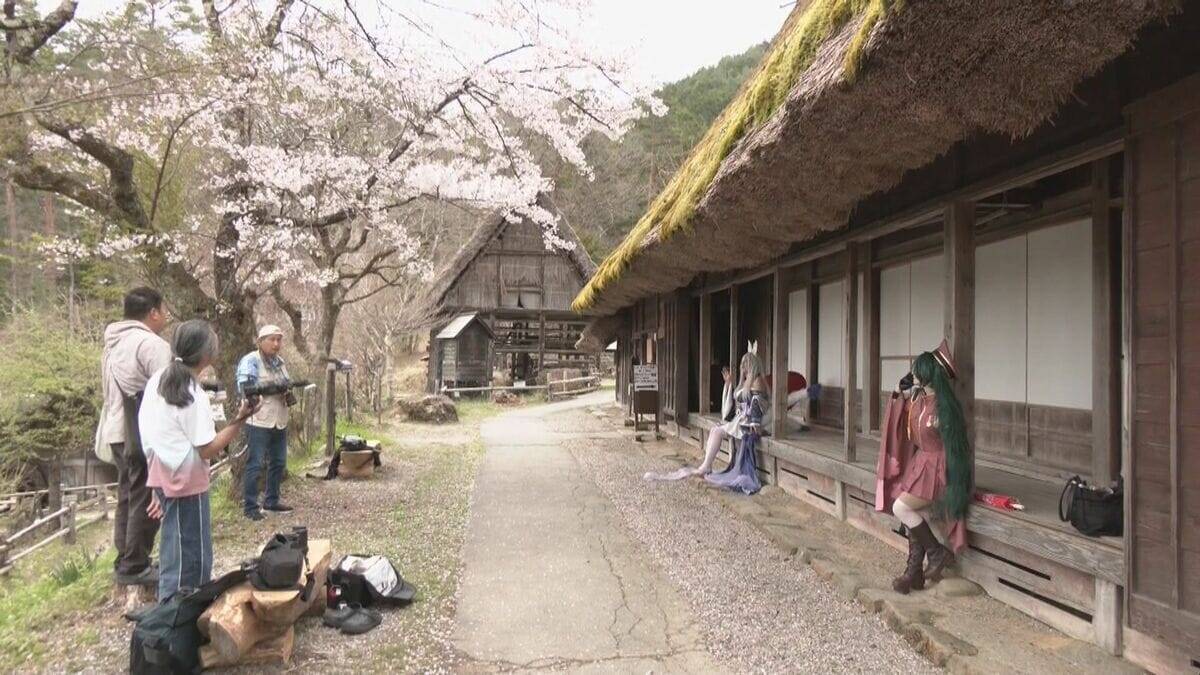 会場の「飛驒の里」には、かやぶき屋根の民家や、囲炉裏、それに水車など、かつての農山村の風景が残されていて、コスプレイヤーらはそれぞれ、お気に入りの景色とともに、撮影を楽しんでいました。