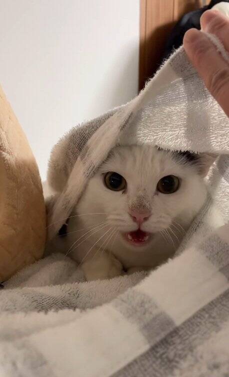 ある日、ゲージの中でのんびりしていた国子ちゃんが、しきりに鳴いていたそう。そこで飼い主さんたちは、国子ちゃんが何を言っているか知るために「猫語翻訳アプリ」を使ってみることにしたといいます。