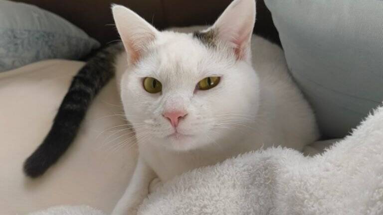 Xアカウント「やわとろ」に登場したのは、猫のデカ太郎ちゃん。白い毛並みが愛らしい猫ちゃんです。