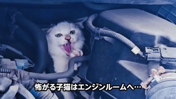 エンジンルームに逃げ込んだ子猫