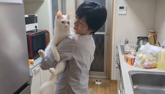 普通は嫌がって逃げてもおかしくありませんが、嫌そうな顔をしながらもとてもお利口さんなシロくん。一度嫌がってママさんからおりた時も逃げなかったそうで、すぐに抱っこさせてくれる姿からはご家族を信頼する様子が伝わってきます。
