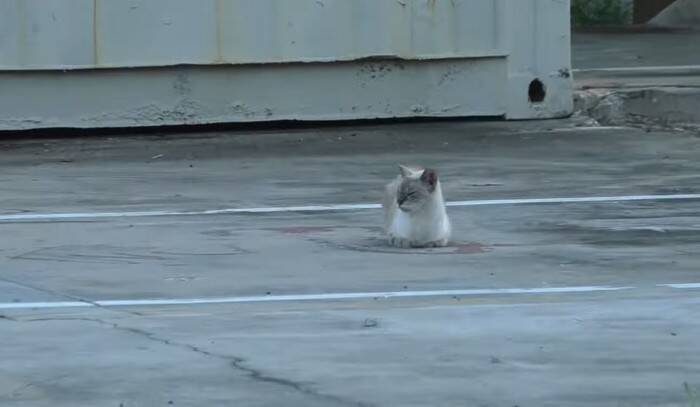 「自動車販売店の駐車場にとても痩せた猫がいる」