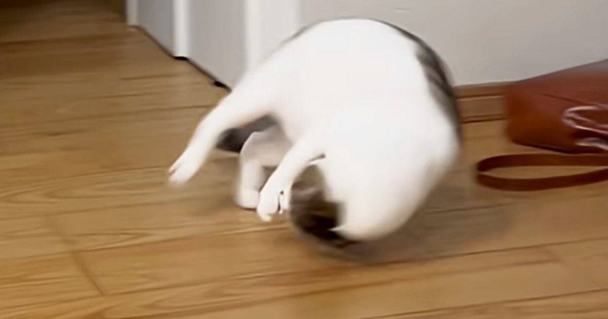 猫さん特有の柔軟性と高い身体能力を活用して、見ていて惚れ惚れするほどの回転技を決めたポムくん。その姿はまるで、回転レシーブをするアスリートのよう。もしかしたら回ることで勢いを和らげ、壁や物に激突するのを避けるというのも、回転した理由の一つだったのかもしれません。