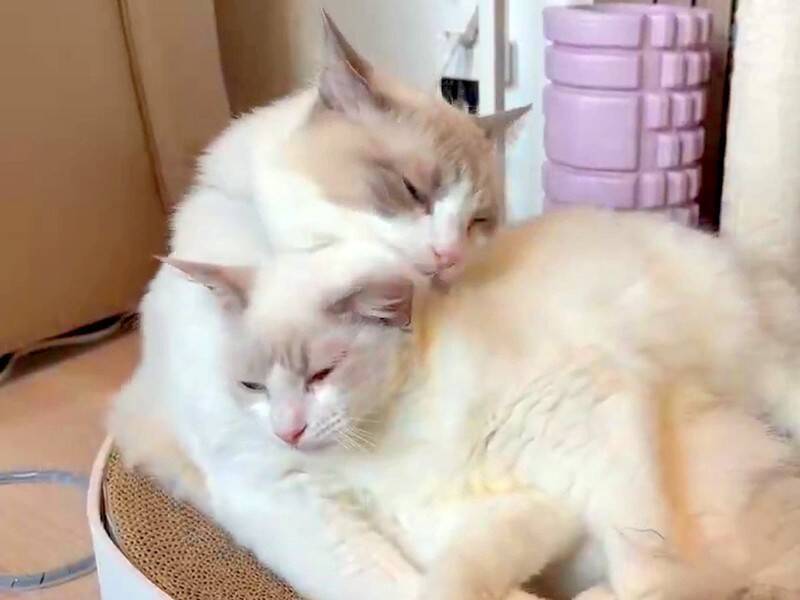 うらやましくなってしまう位に仲良しの2匹の猫。「ルル」ちゃんはお互いにペロペロしたいのに、「シェリー」ちゃんの愛が強すぎてペロペロする隙をもらえないという超・ラブラブっぷり!