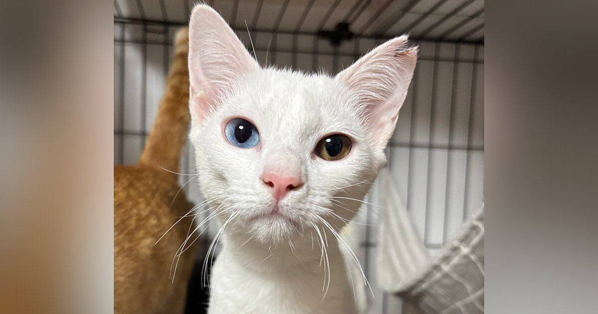 今回ご紹介するのは、保護された当初、ガリガリだったオッドアイが特徴的な白猫さん。