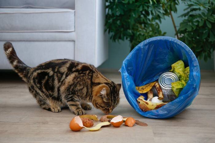 猫がごみ箱を漁るリスク