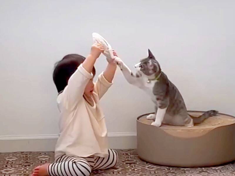 子猫と赤ちゃんが仲良く過ごす姿が癒されると話題です。動画には「可愛い相棒さんと仲良しこよしが微笑ましいですね」「2人とも尊い♡」等のコメントが寄せられ1.8万回以上再生されています。