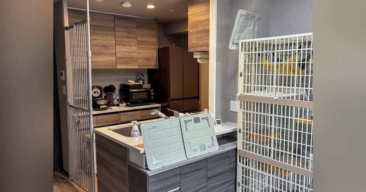 「猫が入れないキッチンにリフォームしたい」——そんな依頼に応えるために考え抜いた末、出来上がったキッチンがXで大反響!アイデア力抜群なキッチンデザインはユーザーの目に230万回も留まり、「人間がケージの中なのねw」「afterでめっちゃ不満そうな猫様いてウケるw」「もはや飼い主が飼われとる…」などの声が寄せられました!
