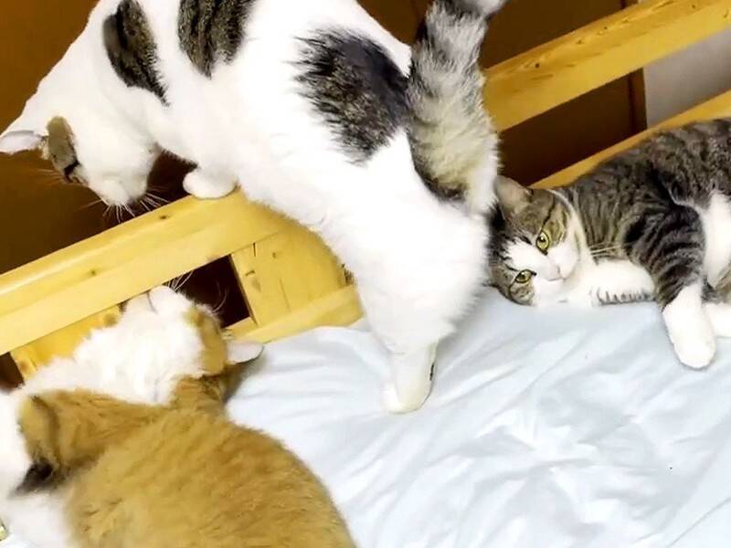 ベッドに大集合する猫ちゃん達が可愛くて癒されると話題です。動画には「私も一緒に埋もれて寝たい」「息子くんのベッドは、にゃんこスポットですね!」等のコメントが寄せられ26万回以上再生されているようです。