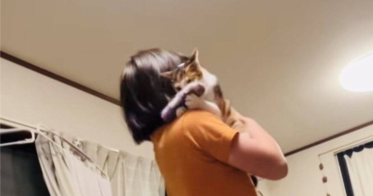 娘さんに抱っこされたたまちゃんは手袋をカミカミしつつ、どこか嬉しそうだったといいます。「この遊び、楽しいにゃ」と思っているのかもしれません。