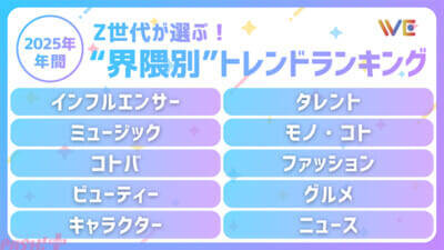 「2025年年間Z世代が選ぶ!“界隈別”トレンドランキング」