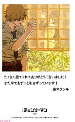 大ヒット公開中の劇場版『チェンソーマン レゼ篇』が観客動員数655万人、興行収入100億円を突破。原作者・藤本タツキさんより来場御礼の描き下ろしイラスト&コメントが到着しました。