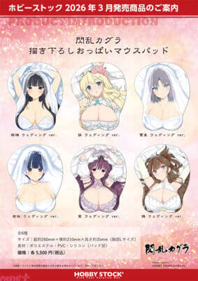 ホビーストックは、本日1月15日より、企画商品『閃乱カグラ 描き下ろしおっぱいマウスパッド』6種の予約受付を開始しました。全国のホビー・アニメショップ、WEB 通販サイトなどで購入できます。
