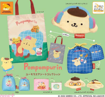 「ポーチ」「巾着」「トートバッグ」は表裏別デザインで、ポムポムプリンたちの可愛い姿を存分に楽しむことができます。どれが出ても嬉しい魅力的なラインナップ! ぜひこの機会にゲットしてみてください。