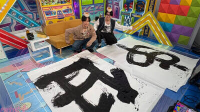 番組後半では書道に挑戦し、スタジオに用意された巨大な書道セットに「お~!」と歓声をあげた二人。今年のテーマを書くことになり、まずは花江が筆を執ります。和風のBGMに合わせてノリノリの花江は時折掛け声を交えながら力強いタッチで進め、完成したのは通貨「ドル」の記号。「最初は“今年の運勢Sランクでいこう”って思ってSを書いていたんだけど、墨がポタポタ垂れてきちゃったのでドルにしました」と話します。それを聞いた小野が「今年は柔軟にってこと?」と返すと、花江は「そう!柔軟な姿勢で仕事をしていくってことでね」と語り、予定変更も早速新たに始まった一年への意気込みに変える柔軟さを見せました。