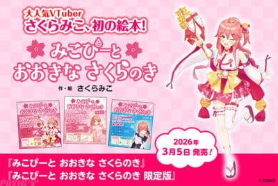 フレーベル館は、ホロライブ所属VTuber・さくらみこ先生による初の絵本『みこぴーと おおきな さくらのき』を、2026年3月5日(木)より全国の書店およびネット書店にて発売します。また、数量限定で『みこぴーと おおきな さくらのき 限定版』も発売します。