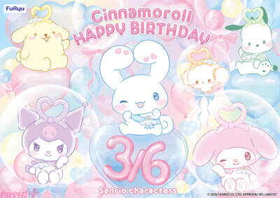 フリューでは、3月6日(金)に迎えるシナモロールのバースデーをお祝いするプライズをご用意しました。