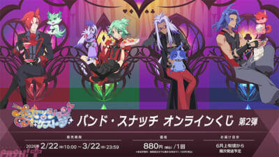 日曜あさ9時00分よりテレ東系列6局ネットほかにて放送中のTVアニメ『プリンセッション・オーケストラ』より、第42話「多重露光」でのバンド・スナッチ再登場を記念して、オンラインくじ第2弾の発売が決定しました。前回大好評につき、第2弾はKINGくじ限定・新規描き下ろしイラストに加え、女装バージョンやアリスピアン態なども使用したレアアイテムが満載となります。