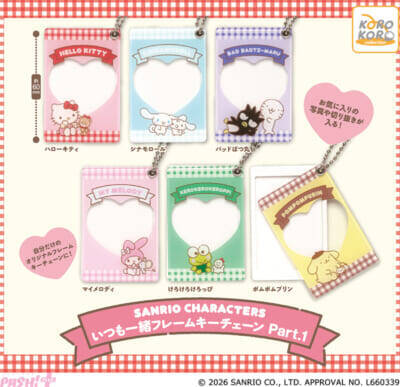 アイピーフォーは、『サンリオキャラクターズ いつも一緒フレームキーチェーンPart.1』(1回300円・税込、全6種)を2026年3月下旬から、順次全国のカプセルトイコーナーにて発売予定です。