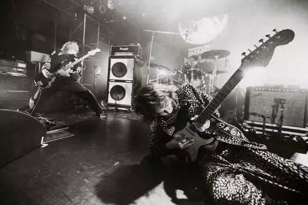 小林と中野も、サポートドラマーの福田洋子と大井一彌も全身黒ずくめ。昔、鈴木慶一がデヴィッド・ギルモアのライブDVDを見て、やはり黒ずくめの服装に「これは自分を見るんじゃなくて音楽を聴いてくれってことなんだろうね」と話していたのを思い出したが、フロントの2人の色気のあるたたずまいはどうしても目を惹く。ステージ右手のエントランス近くではイラストレーターYUGO.によるライブペインティングが行われていた。
