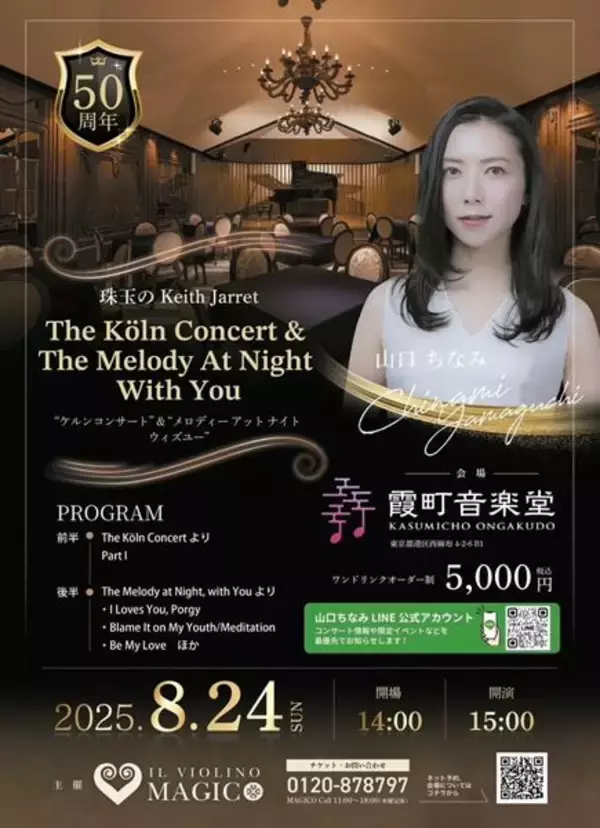 今年1月に霞町音楽堂で行われたキース・ジャレットの名盤「ザ・ケルン・コンサート」全曲再現コンサートは、“ジャズ史上屈指の名盤”と称えられる「ザ・ケルン・コンサート」を、新進気鋭のピアニスト山口ちなみが忠実に再現した話題の公演だ。
