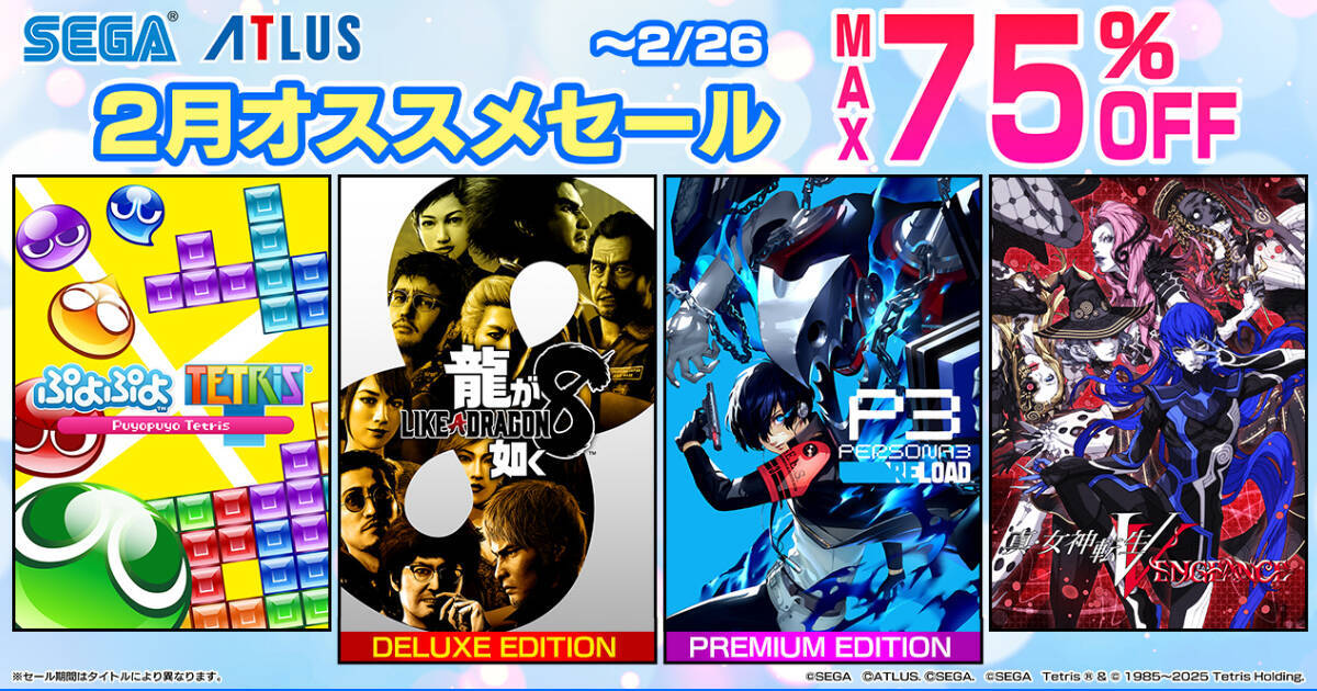 株式会社セガが、PlayStation Storeおよびニンテンドーeショップにて、一部のタイトルを対象とした「セガ 2月オススメセール」を2025年2月12日(水)から開催中です。