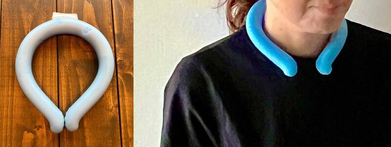 記者も、キッチンで火を使うときや掃除機をかけるときに使っているが、首が冷えてもキーンとした冷たさにならずとても心地よい。