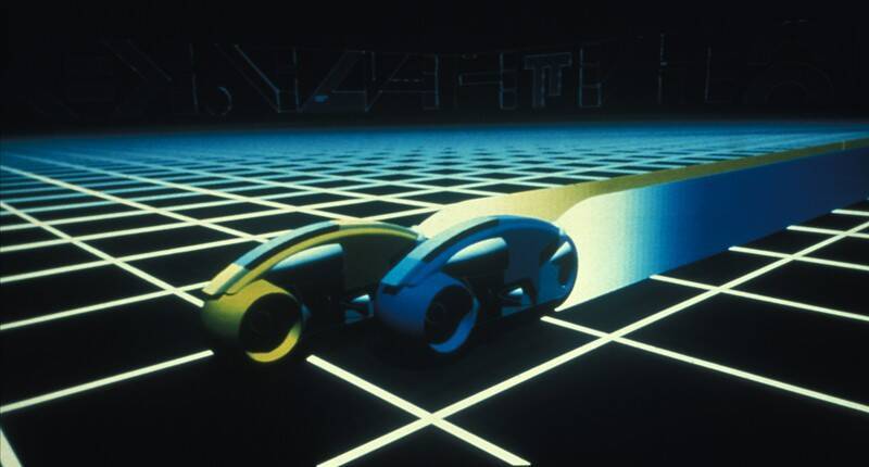 グリッド上を疾走するライトサイクルのシーン。古典でありながら古びない