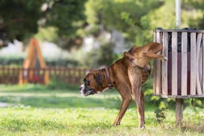 犬は嗅覚が優れているため、他の犬のおしっこの匂いを嗅いで情報を得ようとします。オスの場合はそのおしっこを自分の匂いで上書きしようと、さらに上から排泄してしまう犬もいるでしょう。