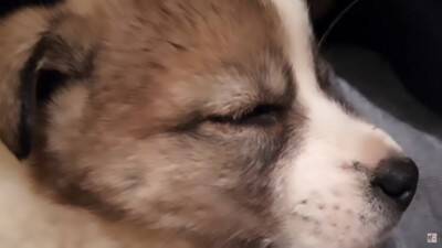 1食分をペロリとたいらげた子犬は、そのまますぐに寝てしまったんだとか。子犬がどこから来たのかはまったくわからなかったそうですが、よほど歩き疲れていたのかもしれません。