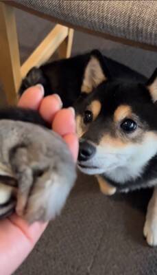動画の主役は、豆柴の『コメ助』くん。この日投稿主さんは、新しく家族の仲間入りを果たしたフクロモモンガさんをコメ助くんに紹介したそう。手のひらに乗るほど小さなフクロモモンガさんを差し出すと、コメ助くんはキラキラのおめめでフクロモモンガさんを見つめたんだとか。