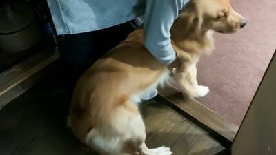 ゴールデンレトリバーの「ジョイ」くんは、2017年生まれの男の子。そんなジョイくんと共に暮らす飼い主さんは、どうやらコンビニに行きたい様子。しかし体の大きなジョイくんを外に連れ出すのは一仕事なので、できれば置いていきたかったのだそうです。