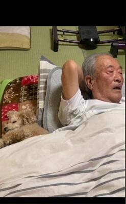 今になれば、いつでもどこでも常に一緒に過ごしているというじいじとノエルさん。お布団に一緒に入り、ぴったり寄り添い過ごしているそのお姿はすでに日常となっているようです。