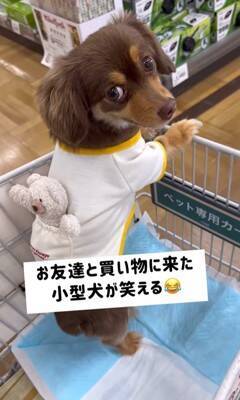 Instagramに投稿されたのは、ワンコがぬいぐるみのクマ君と一緒にお買い物に行ったときの様子です。動画は記事執筆時点で94万6000回再生を突破し、「可愛すぎる」「お友だちと買い物、楽しそうだね」といった声が寄せられています。