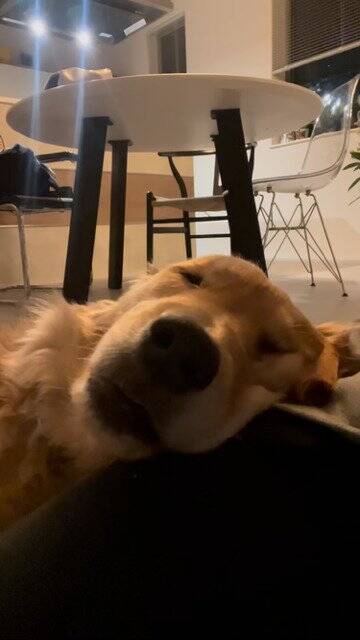 今回の主役はゴールデンレトリーバーの「ビビ」ちゃん。アウトドア好きの飼い主さんと過ごしています。ある日、気持ちよさそうに寝ていたというビビちゃんですが、「カッ」といびきをかき始めたといいます。